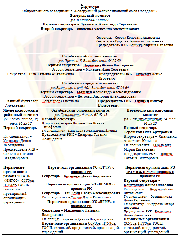 Председатель Витебского областного Совета ОО «БРПО» — Александрович Анна Владимировна;