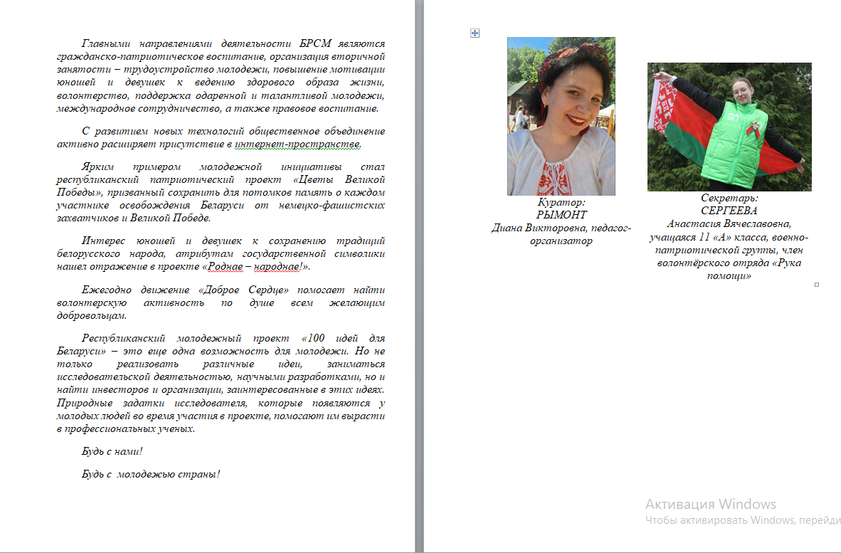 Старший вожатый пионерской дружины — Рымонт Диана Викторовна